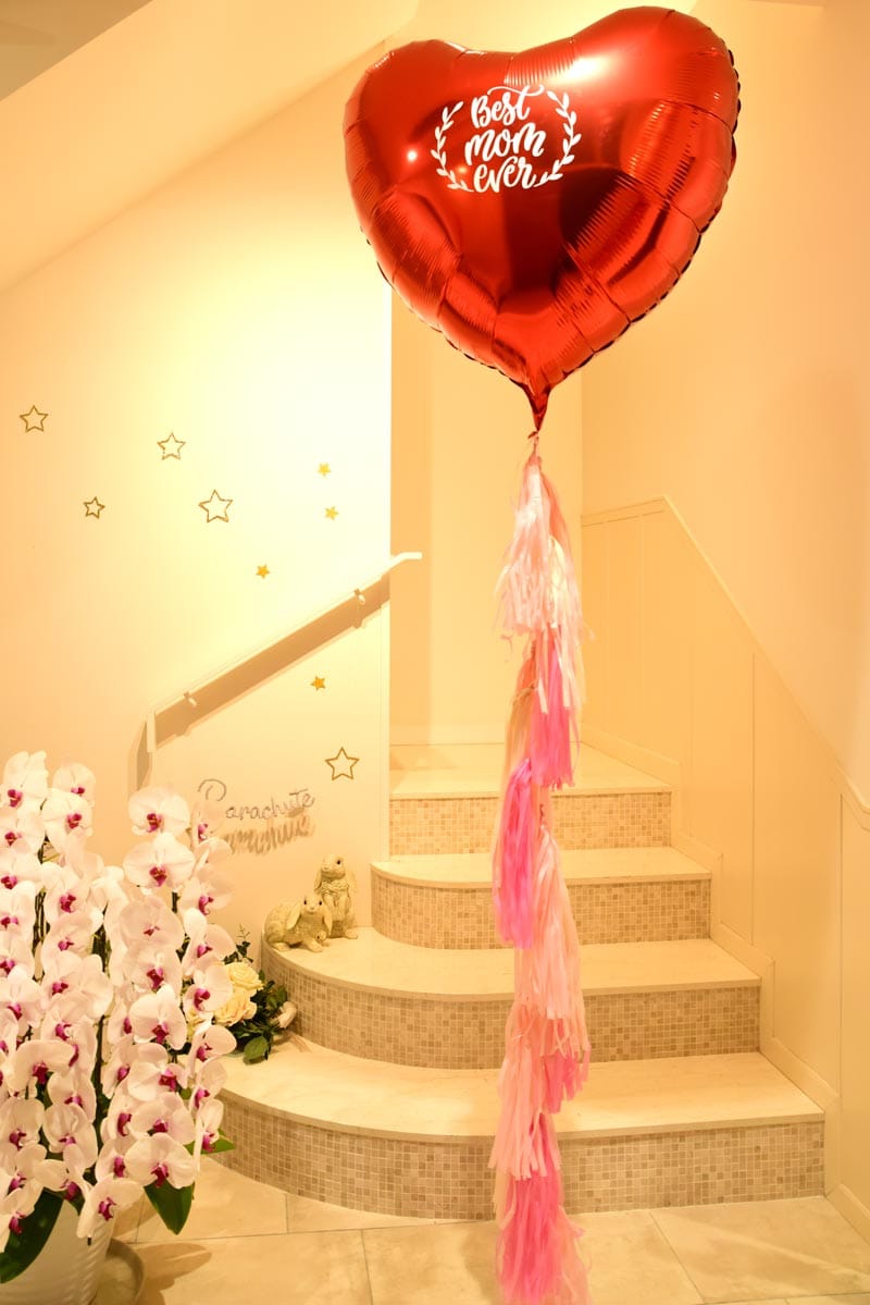 エントランスに入ってすぐの空間にはインパクトのある大きなハートのバルーンを。