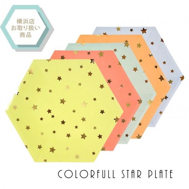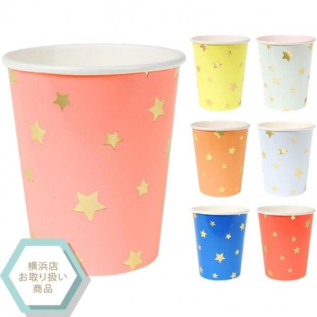 | 【Meri Meri】 ゴールドスター柄プレート 8色 | 【Meri Meri】 ゴールドスター柄ナプキン 8色16枚 | 【Meri Meri】 ゴールドスター柄カップ 8色 |