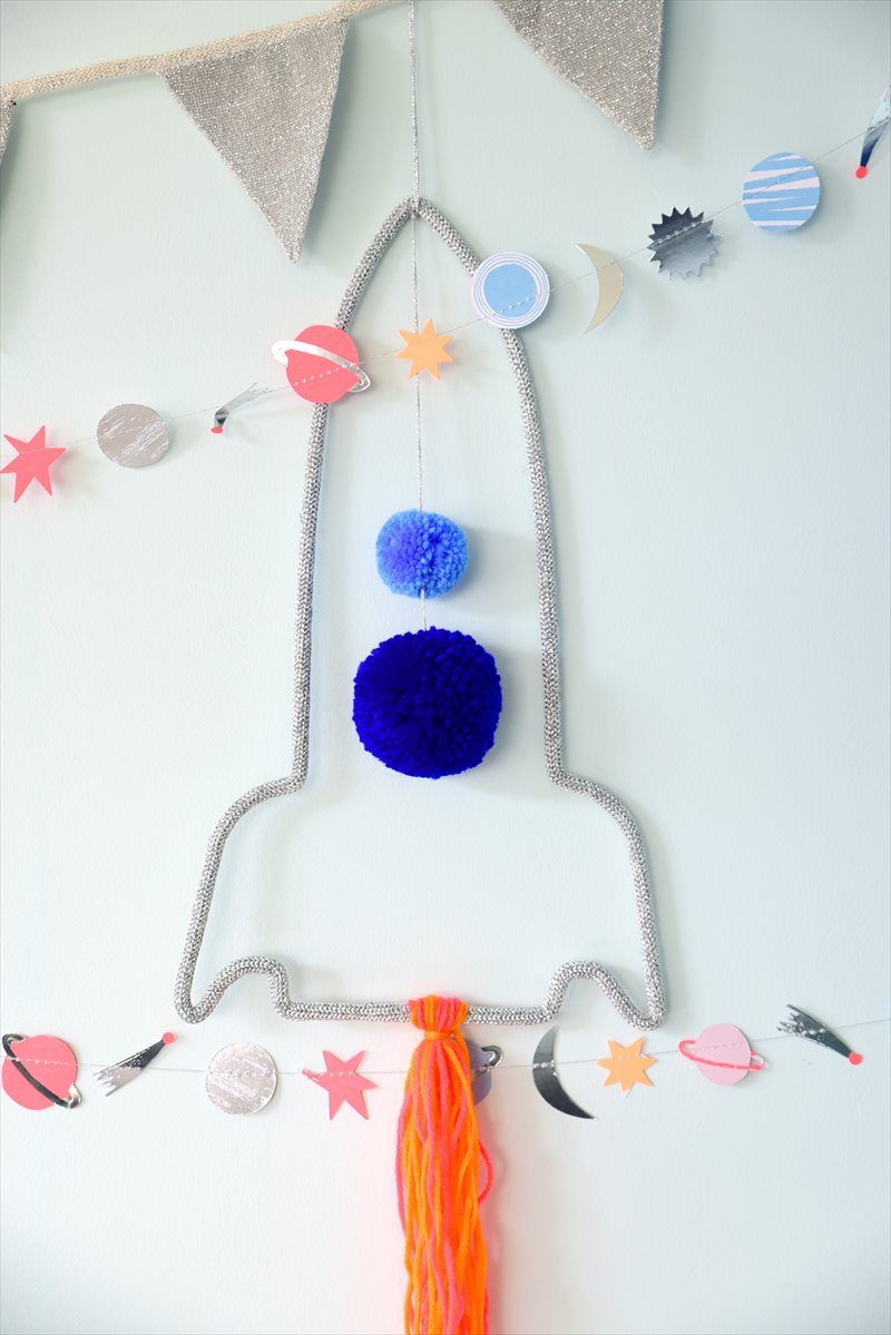 メインデコレーションはシンプルに、お星さまや惑星モチーフのミニガーランドに、