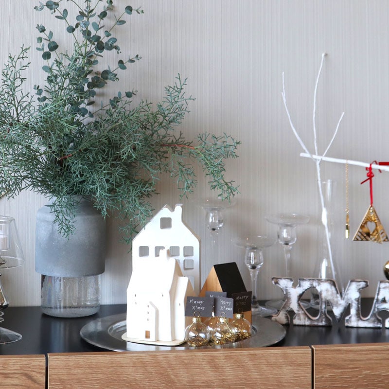 ご家族ぐるみで仲良くしている方々との今年最後の集まりなので、ゆっくりとお料理を囲みながらお話ができるよう、ダイニングテーブルを中心にコーディネートされたそう。