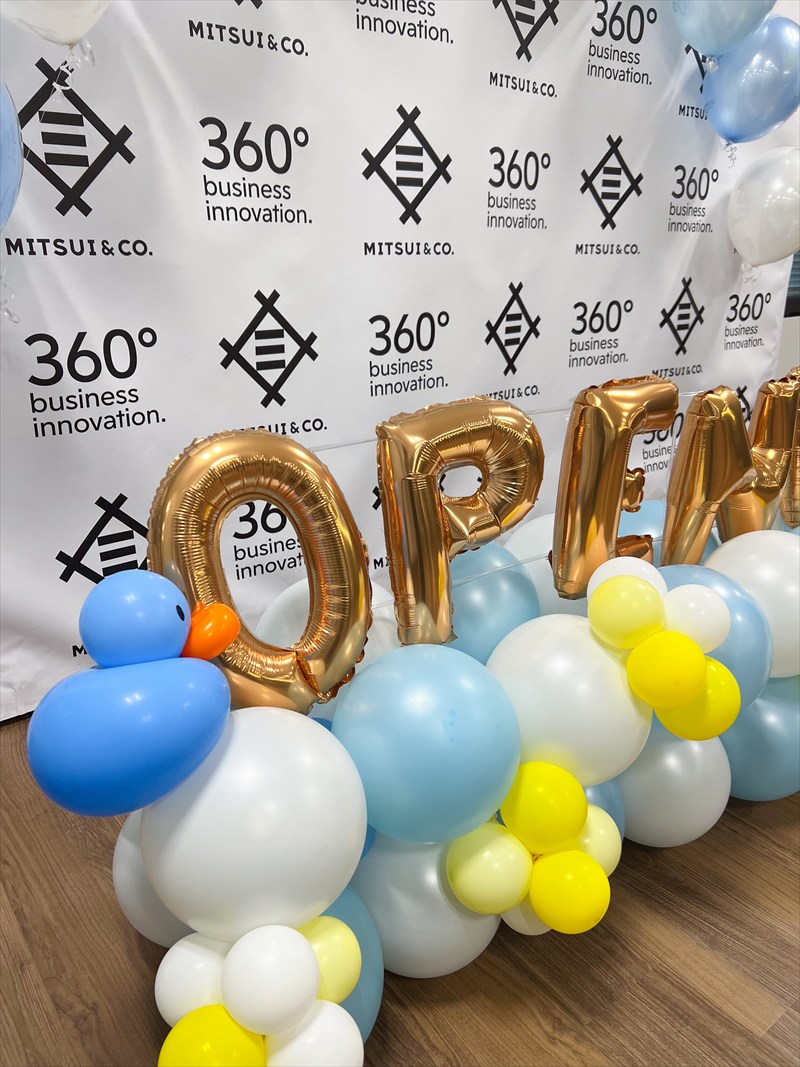 背景には、フォトスポットとして写真映えするバルーンアーチを設置。