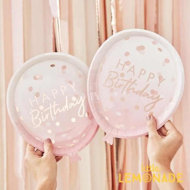 ピンク×ゴールドドットのプレートにHAPPY BIRTYDAYのプレートを重ねて。