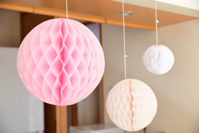 ライトピンクが可愛いハニカムボールもデコレーションにアクセントに。