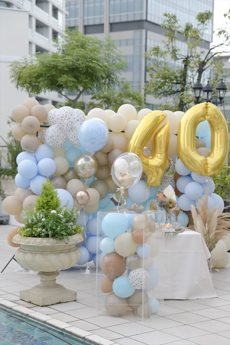 ということで、今年は店舗スタッフ全員で40のバルーンをメインに、盛大に飾り付けをしてお祝いをしました。