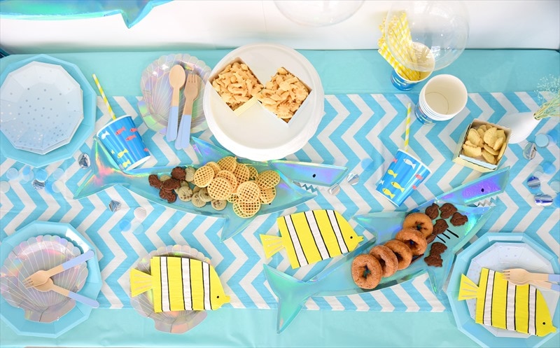 「海」をテーマにしたパーティーというと、真っ先に思いつくのは、お魚やクジラやイルカ、マーメイドやサメなどの海の生物たち。青い背景に色とりどりの海の生き物を演出したら子供も楽しめるパーティーになりそう!