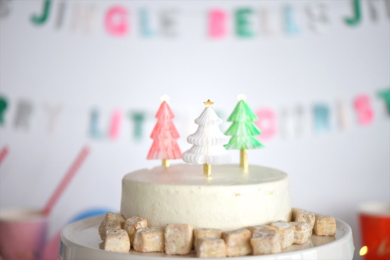 みんながお待ちかねのケーキは、とっても愛らしいツリー型トッパーを主役にしたくて、