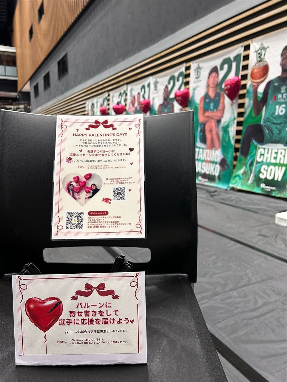 昨シーズン同様、バレンタイン間近のホームゲームには、Xバナーと一緒に選手の名前と背番号入りのハートバルーンを飾り、フォトスポットとして活用していただきました。