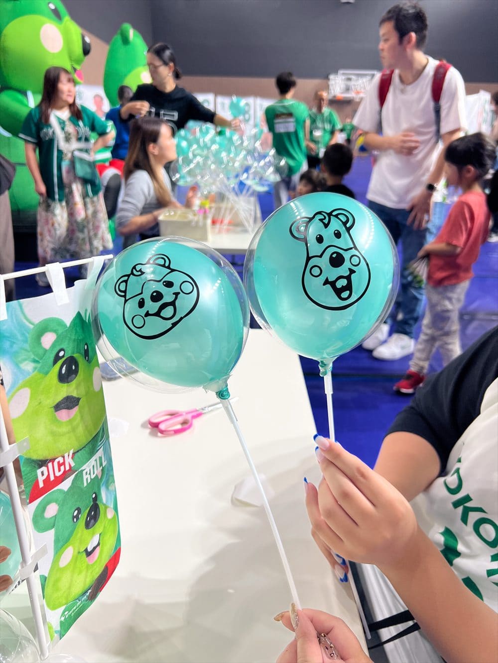 12月9日-10日のホームゲームには、クリスマスをイメージしたバルーンフォトブースを設置いたしました。この時リリースされたばかりの特大のピックとロールのぬいぐるみにも参加してもらって、クリスマスが待ち遠しくなるカラフルでポップなブースが完成しました。