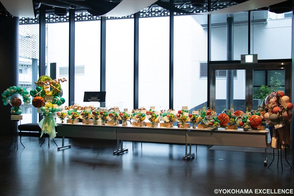また、企業様からのお祝い花もずらっと並び、さすが地元横浜に根付いたチームだなと、日頃の地域活動で築いた地域からの期待を強く感じました。