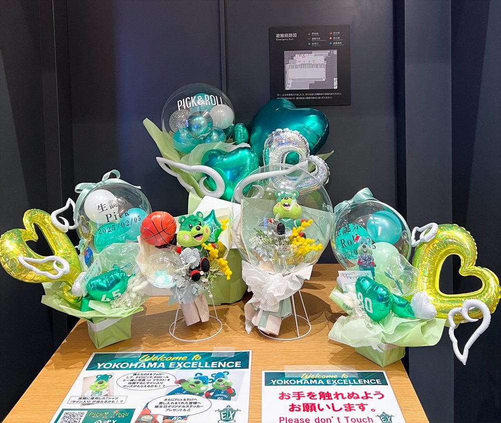 今回はトレイ・ボイド(TB)選手のお誕生日をマークしたカレンダーバルーンや、勝った時に彼が使う定番フレーズ「YERRPP」や背番号のバルーンを飾ってお祝いしました。